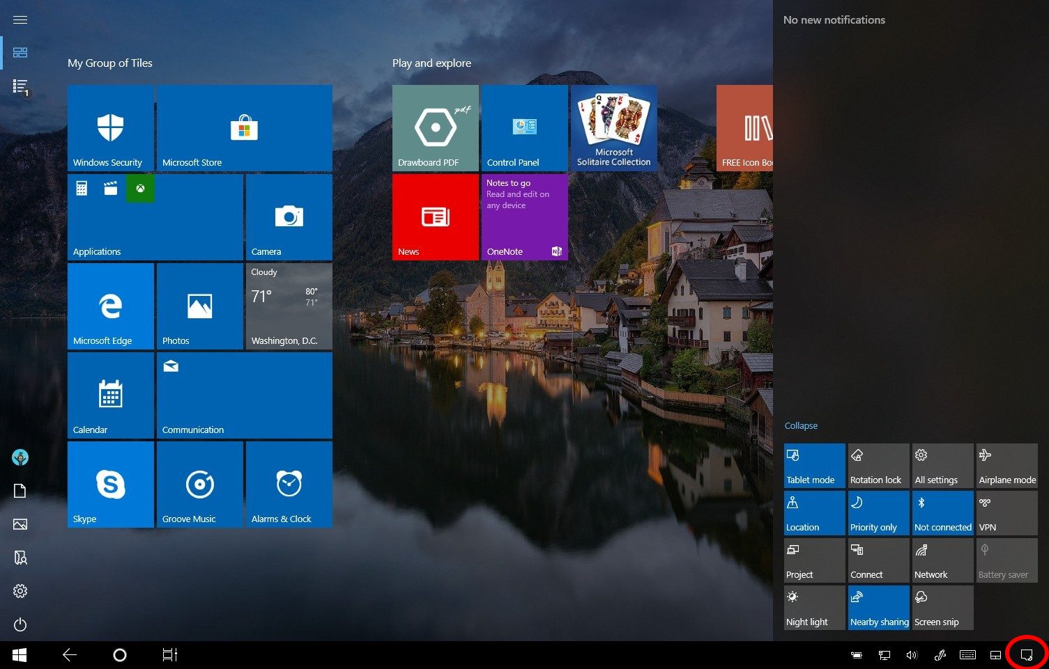 The first step is to open the Action Center. Click the speech bubble icon located in the very bottom right corner of your taskbar.